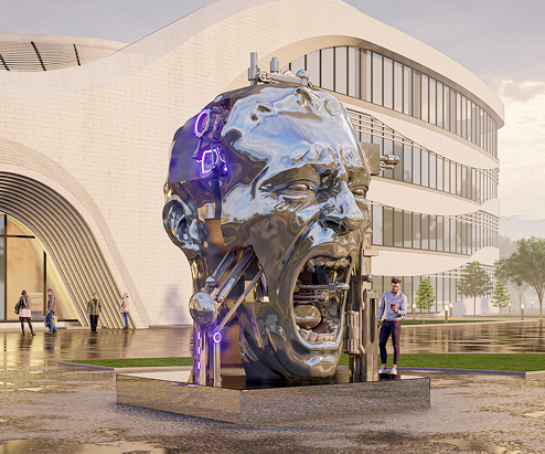 «Бесконечный круг» — скульптура современного казахского художника Тамерлана Тлеса. Она сочетает этнические мотивы с геометрическими формами и создана вручную из меди, бронзы и гранита.